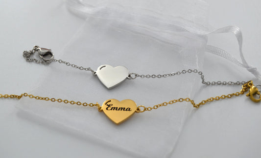 Bracelet personnalisé en acier Inoxydable Gravé avec médaillon en coeur